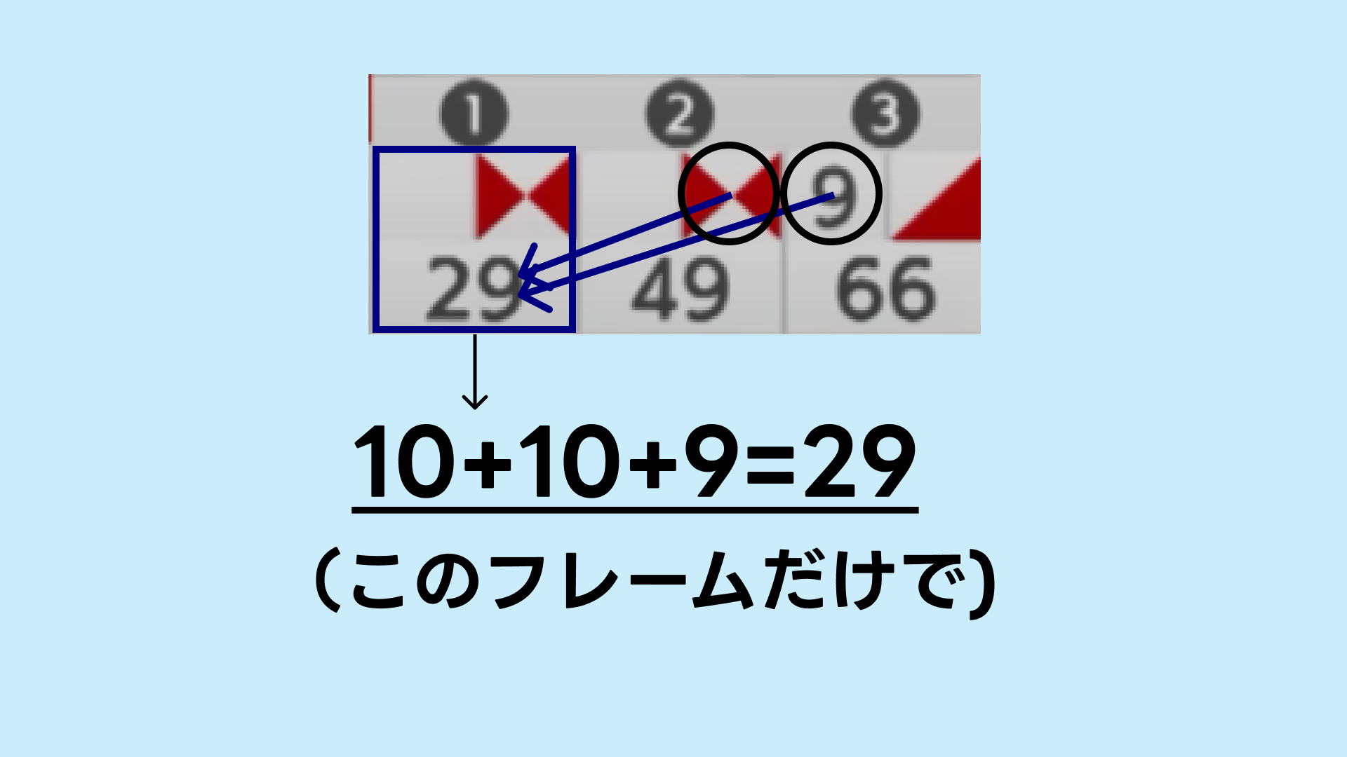 なぜなら、スペアを取ると、次のフレームの1投目に倒したピンの数がボーナスとして反映されるからです。.png)