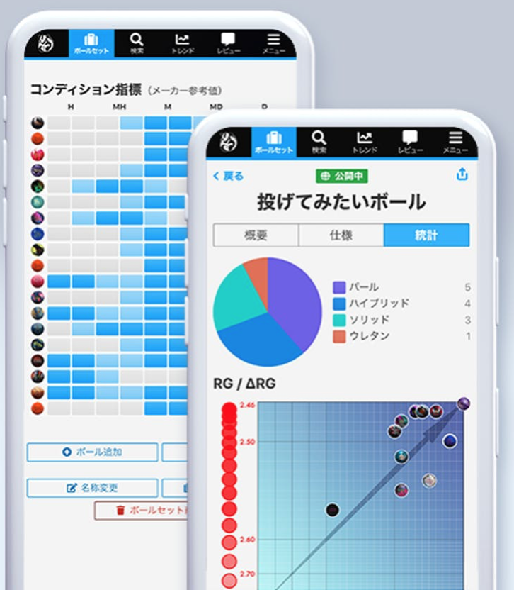 RGや⊿RGの大きさで並べ替えをしたり、カバーストックで分類することが可能で、ボールの組み合わせやスペックを視覚的に管理できる優れものです。