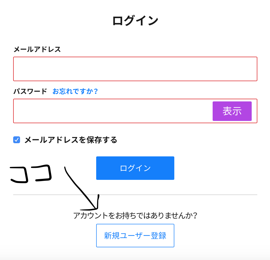 その後、ログイン画面がでますのでアカウント登録をしましょう!