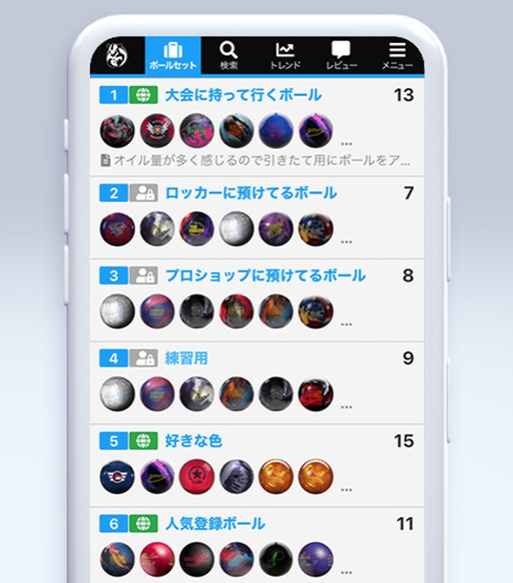 ・みんなが登録しているボールやランキング